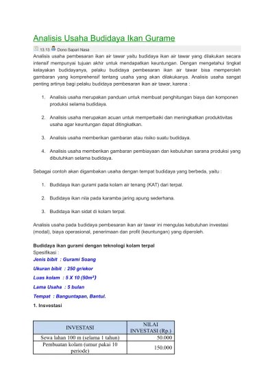 Gambar 2, gambar 3 dan gambar 4. Pendapatan usaha budidaya ikan kerapu lumpur di daerah penelitian. Pengumpulan data yang dibutuhkan dalam penelitian ini adalah data primer dan data sekunder. Sumberdaya perikanan dan kelautan purwokerto 2014 praktikum kewirausahaan di "mina . Proposal usaha budidaya ikan lele.