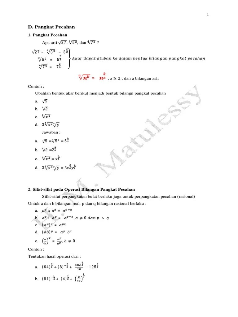 Hitung contoh soal dan pembahasan mengenai bilangan berpangkat pecahan.